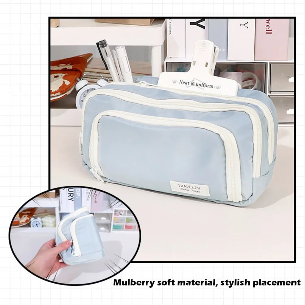 Large Capacity 3 Layers Pen Box Kawaii Pencil Cases Cute Pen Holder Pouch for Students Back to School Stationery Supplies