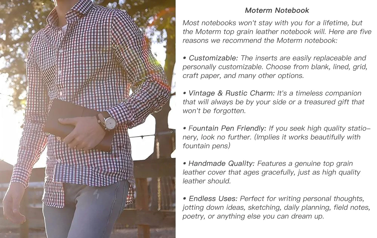 Moterm Hot Sale 100% Genuine Leather Notebook Handmade Vintage Cowhide Diary Journal Sketchbook Planner TN Travel Notebook Cover